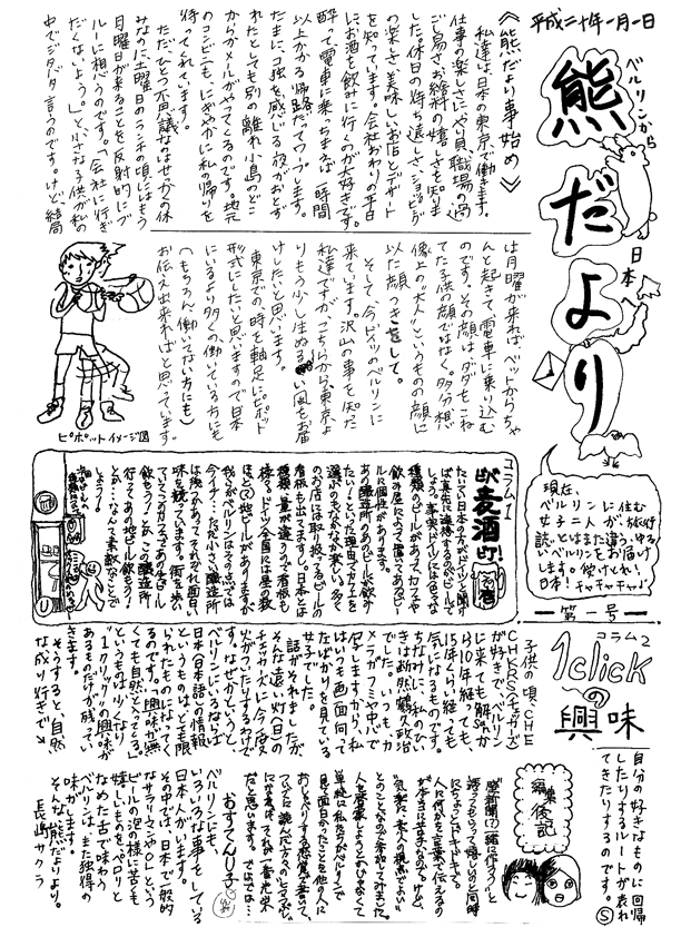 手作り新聞を作っている メンバーの一人です。 新聞の名前は、ベルリン市の シンボル“熊”にちなんで 「熊だより」です。